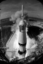 絵画風 壁紙ポスター (はがせるシール式) 史上初の月面着陸に成功したアポロ11号の発射 サターンV SA-506 ロケット 1969年 NASA モノクロ キャラクロ NAS-016SM2 (406mm×603mm) <日本製> ウォールステッカー お風呂ポスター