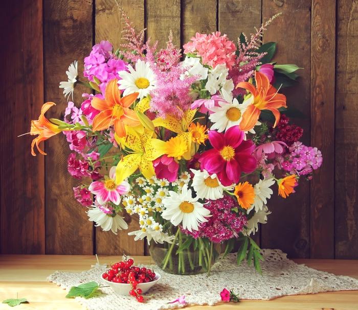 絵画風 壁紙ポスター (はがせるシール式) ブーケ アルストロメリア カモミール フラワーアレンジ 花 花束 キャラクロ FBQT-001S1 (685mm×594mm) <日本製> ウォールステッカー お風呂ポスター