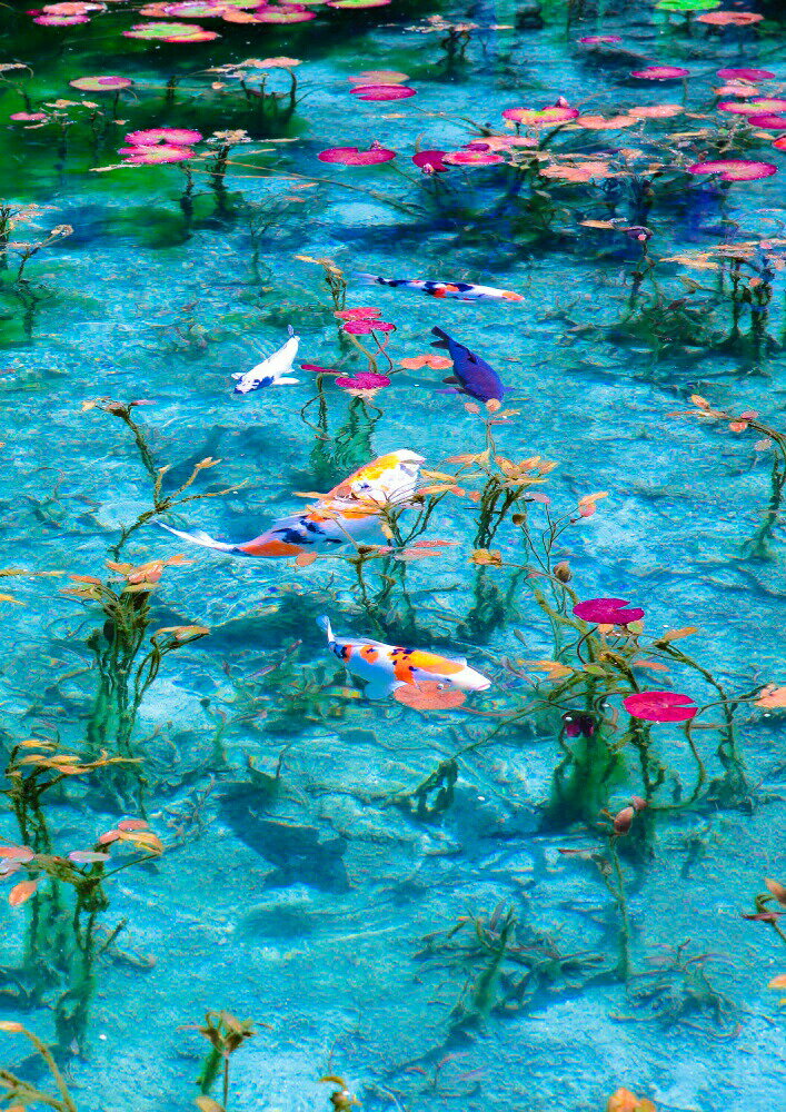 絵画風 壁紙ポスター (はがせるシール式) -地球の撮り方- まるで絵画、岐阜県関市の「モネの池」(名前のない池) キャラクロ C-ZJP-003A1 (A1版 585mm×830mm) <日本製> ウォールステッカー お風呂ポスター