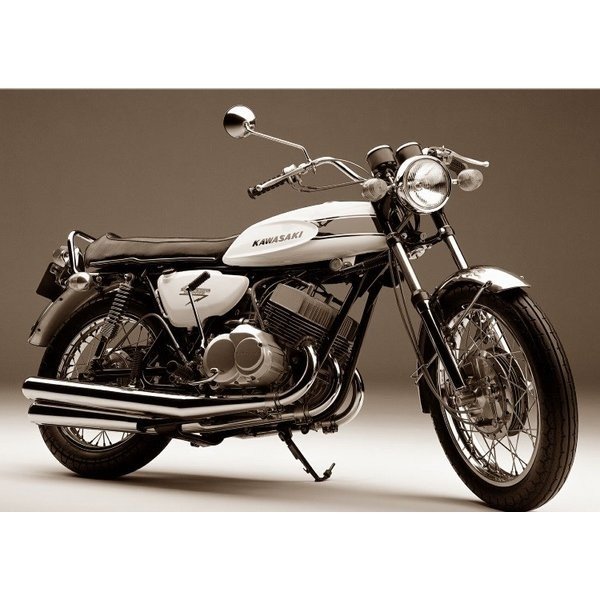 絵画風 壁紙ポスター (はがせるシール式) カワサキ 500SS 初期型H1 マッハ3 1969年 伝説のバイク セピア キャラクロ K5SS-003A1 (A1版 830mm×585mm) <日本製> ウォールステッカー お風呂ポスター