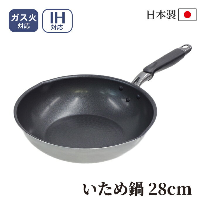 竹原製缶 霞 IHいため鍋 28cm PJ-528 日本製 【ガス火 IH オール熱源 対応 PFOA PFOS フリー 軽量 軽い 金属ヘラ OK 高品質】