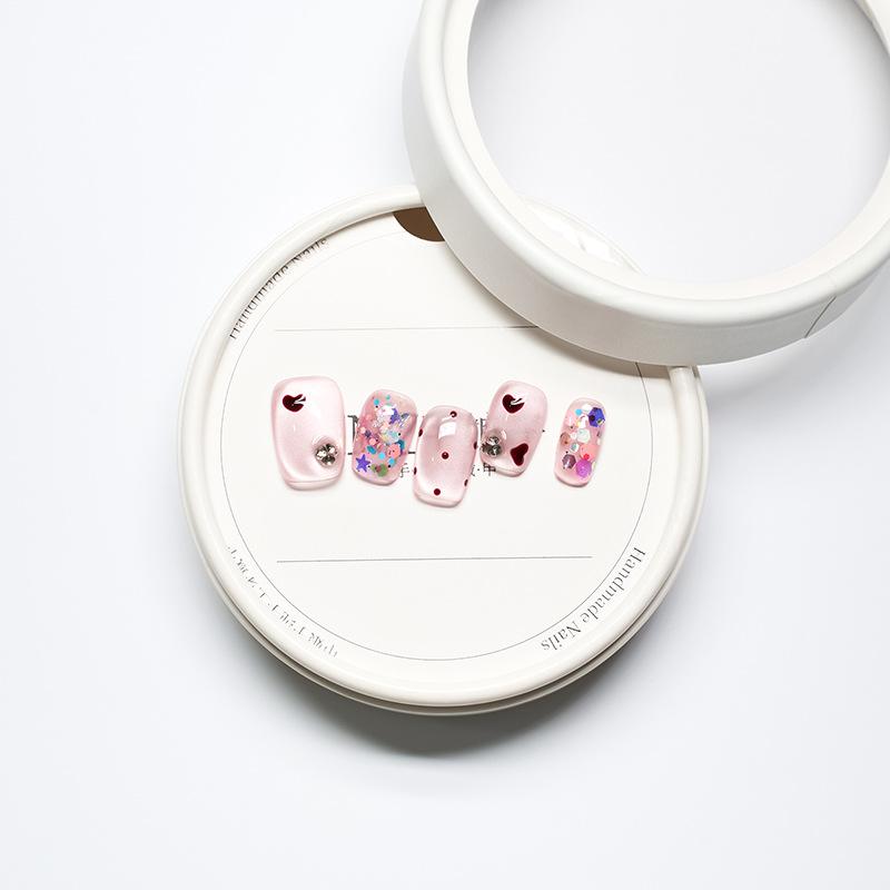 ネイルチップ レディース 春夏 手作り 猫目 ストーン ハート柄 ピンク系 ショート 短め 付け爪 おしゃれ かわいい シンプル 上品 普段使い