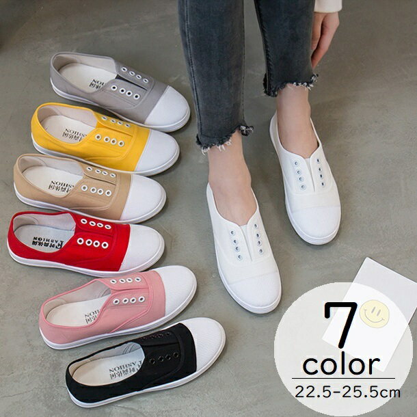 送料無料 スリッポン スニーカー レディース 女性 靴 くつ シューズ 運動靴 婦人用 ローカット 単色 紐なし シンプル おしゃれ カジュアル かわいい 普段使い スポーツ ランニング ウォーキング ベーシック 定番 ヘビロテ 通学 通勤 白 黄 赤 黒 ピンク 灰 カーキ