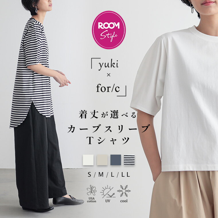 【最大60%OFFクーポン 27日9:59迄】【yuki×for/cコラボ】接触冷感 UVカット カーブスリーブ Tシャツ 丈が選べる レディース トップス カットソー 半袖 細見え USAコットン エコ 春 夏 M Lサイズ 洗濯可 for/c フォーシー 楽天room【メール便可】
