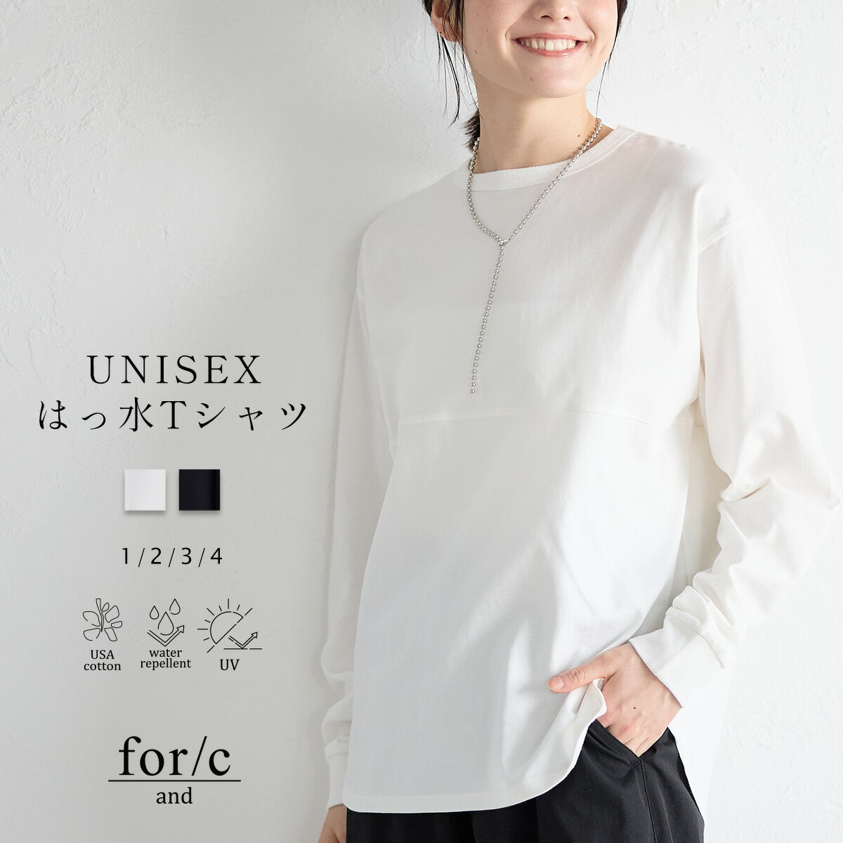 【最大60%OFFクーポン 27日9:59迄】[for/c and]ユニセックス 撥水 ロンT レディース メンズ トップス カットソー クルーネック 長袖 無地 リサイクルポリエステル エコ 春 夏 秋 冬 オールシーズン 洗濯可 for/c フォーシー 楽天room