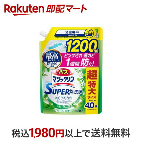 【最大1,000円クーポン発行中】 バスマジックリン お風呂用洗剤 スーパー泡洗浄 グリーンハーブ 詰替 スパウト大 1200ml 【バスマジックリン】 洗剤 おふろ用 詰替