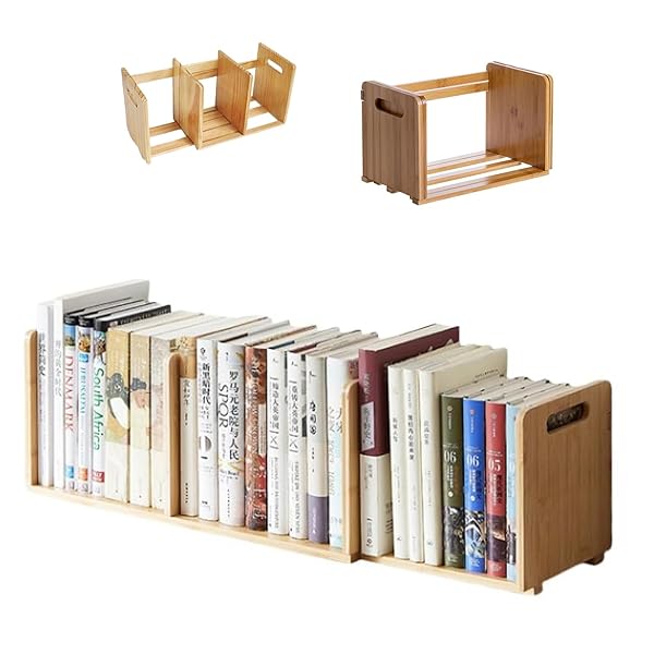 ブックエンド 伸縮 本立て ブックスタンド 本棚 卓上 竹製 スライド 倒れない 組み立て式 ハンドル付き 大容量 卓上本棚 教科書/書類/ファイル/絵本/コミック/小物入れ/文房具収納用 整理整頓 デスク上置き棚 机上ラック ナチュラル (97.5