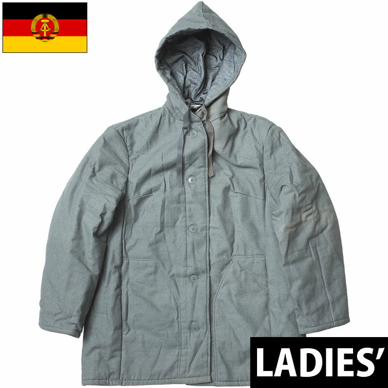 東ドイツ軍 ライナーパーカー 中綿入り グレー レディース デッドストック ZJP530NN 実物 軍モノ 軍物 女性 戦闘服 フィールド ジャケット アウター コート フード付き JKT 厚手 冬 防寒 保温