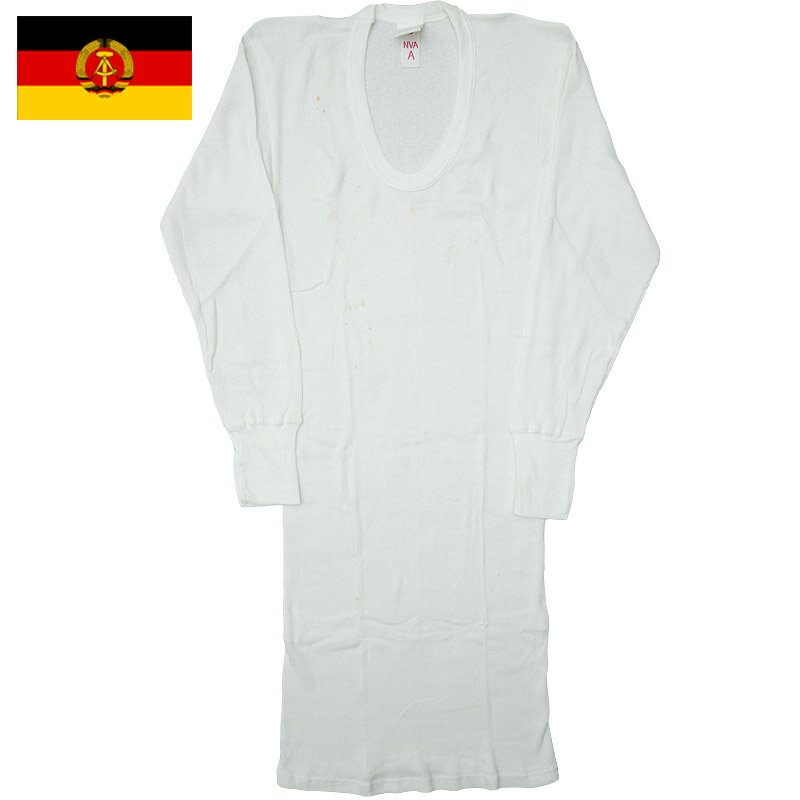 1点ならメール便可 東ドイツ軍 Uネックアンダーシャツ ホワイト リブ デッドストック JU003NN