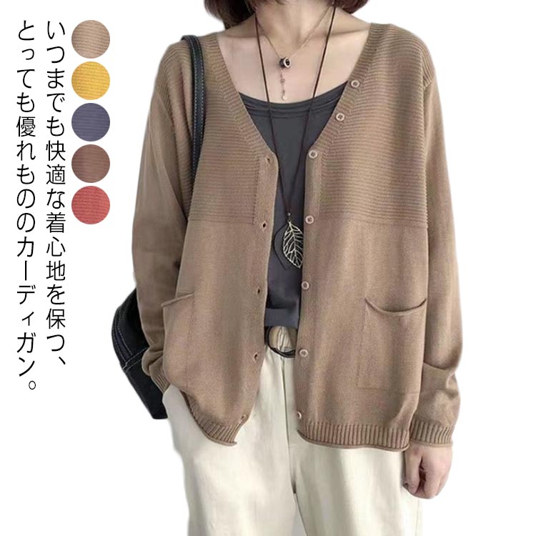 いつまでも快適な着心地を保つ、とっても優れもののカーディガン。毛玉になりにくく、静電気の発生を防ぐ加工がされているので、オフィスに1枚あるととっても重宝!!!伸縮性があり、様々な体型にフィットしやすい。さりげない光沢感と、シワになりにくい、やさしい肌触りがポイント。コンパクトにたためるから、持ち運びもらくらく。おうちで洗えるニット!いつでもキレイが叶う1着お洗濯OK!気兼ねなく洗えるので、使い勝手抜群です。通気性に優れた生地でさらっと快適 サイズ M L XL 2XL サイズについての説明 M袖丈55バスト96着丈58おすすめ体重40-45KG L袖丈56バスト100着丈59おすすめ体重45-50KG XL袖丈57バスト104着丈60おすすめ体重50-55KG 2XL袖丈58バスト108着丈61おすすめ体重55-60KG ※サイズは平置き実寸になります。サイズ表の実寸法は商品によって1-3cm程度の誤差がある場合がございます 素材 ポリエステル 色 イエロー レッド ネイビー コーヒー ベージュ 備考 ●サイズ詳細等の測り方はスタッフ間で統一、徹底はしておりますが、実寸は商品によって若干の誤差(1cm〜3cm )がある場合がございますので、予めご了承ください。 ●商品の色は、撮影時の光や、お客様のモニターの色具合などにより、実際の商品と異なる場合がございます。あらかじめ、ご了承ください。 ●製品によっては、生地の特性上、洗濯時に縮む場合がございますので洗濯時はご注意下さいませ。 ▼色味の強い製品によっては他の衣類などに色移りする場合もございますので、速やかに(脱水、乾燥等)するようにお願いいたします。 ▼生地によっては摩擦や汗、雨などで濡れた時は、他の製品に移染する恐れがございますので、着用の際はご注意下さい。 ▼生地の特性上、やや匂いが強く感じられるものもございます。数日のご使用や陰干しなどで気になる匂いはほとんど感じられなくなります。