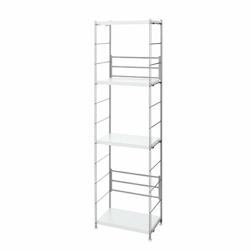 幅約48、奥行約40、高さ約154cm(アジャスター含む) 可動棚4枚(棚板サイズ:幅41cm、奥行約35cm、厚み2.5cm) 耐荷重量/棚板:約10kg 材質フレーム:スチール(エポキシ樹脂粉体塗装)、棚板:プリント紙化粧繊維板 *棚板はホワイト、ナチュラル、ブラウンからお選びください。暖かい木製棚と頑丈なスチールフレームを組み合わせたスチールラックです。シャープなデザインに仕上げました。お部屋の壁面に本体、連結、追加棚を組み合わせてお好みの収納スペース作りに!リビングや書斎の収納だけでなく、キッチンスペースで家電ラックとしても便利です。棚板を上段にして下にはペールを収納しても!幅3タイプ×高さ3タイプからお選びいただけます。 棚板は可動式、下部には高さ調節のアジャスター付きです。