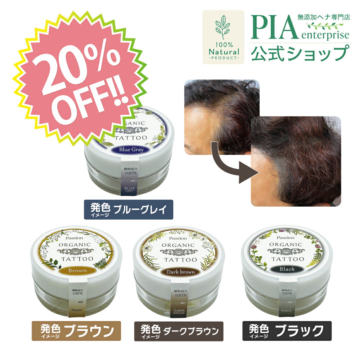 【楽天スーパーSALE期間中 20%OFF】オーガニックタトゥー 各色4g [色:ブラウン / ダークブラウン / ブルーグレイ / ブラック ][ 消えるタトゥー ジャグアタトゥー ヘナタトゥー メヘンディ 頭皮タトゥー ボディタトゥー 薄毛隠し 眉ティント 無添加 無香料 天然成分 ]