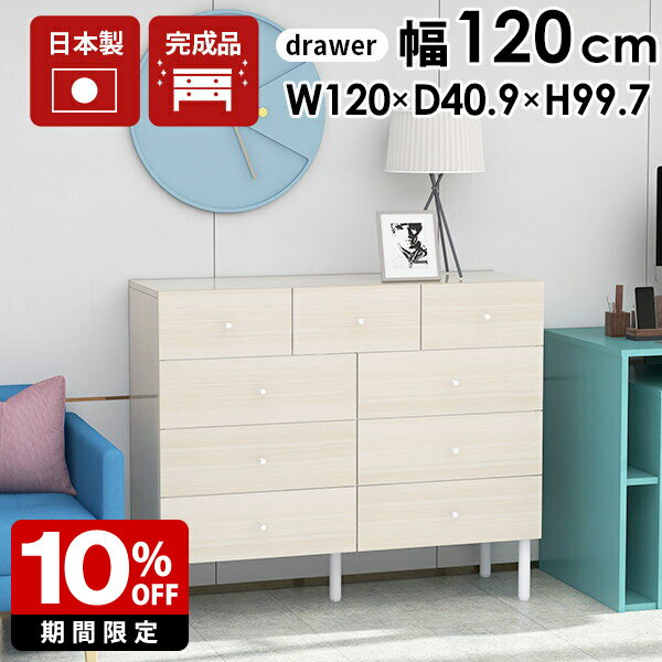 whitewood 120Lチェスト■サイズサイズ:約幅1200 奥行き409 高さ997 mm引き出し内寸:[大]約幅515 奥行き335 高さ120 mm[小]約幅320 奥行き335 高さ120 mm■カラーホワイトウッド(鏡面加工)※モニターなどの閲覧環境によって、実際の色と異なって見える場合がございます。※モニターなどの閲覧環境によって、実際の色と異なって見える場合がございます。■材質メラミン樹脂化粧合板、プリント化粧合板、[脚]鉄■重量約54.5kg■仕様耐荷重:[天板]約15kg(均等荷重)[引き出し]1段につき約5kg日本製完成品(脚・取っ手はお客様取付け)スライドレール付き(引き出し)背面化粧仕上げ(一部タッカー留め)脚部アジャスター付き■ブランド ■送料送料無料※北海道・沖縄・離島は送料別途お見積もり。■納期ご注文状況により納期に変動がございます。最新の納期情報はカラー選択時にご確認ください。※オーダー商品につき、ご注文のキャンセル・変更につきましてはお届け前でありましても生産手配が済んでいるためキャンセル料(商品代金の50%)を頂戴いたします。※商品到着までの日数は、地域により異なりますご購入時にお届け日の指定がない場合、最短日での出荷手配を行いメールにてご連絡させていただきます。■配送・開梱設置について※北海道・沖縄・離島は送料別途お見積もりいたしましてご連絡いたします。【ご注意ください】離島・郡部など一部配送不可地域がございます。配送不可地域の場合は、通常の配送便での玄関渡しとなります。運送業者の便の都合上、地域によってはご希望の日時指定がお受けできない場合がございます。建物の形態(エレベーターの無い3階以上など)によっては別途追加料金を頂戴する場合がございます。吊り上げ作業などが必要な場合につきましても追加料金はお客様ご負担です。サイズの確認不十分などの理由による返品・返金はお受けできません。※ご注文前に商品のサイズと、搬入経路の幅・高さ・戸口サイズなど充分にご確認願います。→ 詳しくはこちら■備考※製造上の都合や商品の改良のため、予告なく仕様変更する場合がございますので予めご了承ください。当店オリジナル家具を全部見るメーカー希望小売価格はメーカーカタログに基づいて掲載しています光を映す、メラミン家具。ワンランク上の空間を楽しむチェスト。豊富な収納力と美しい鏡面の外観が特徴のリビングチェスト。本体と、金属脚の組み合わせがモダンな印象を与えてくれます。シンプルなデザインなのでリビングやダイニング、寝室など、どんな部屋にも置きやすい引き出しタイプの収納家具です。どんな場所にも合わせやすいシンプルデザインスタイリッシュな空間を演出してくれる、おしゃれな引出しタイプのチェスト。艶のあるメラミン素材を使用しているので、高級感をも感じさせてくれます。使いやすい、多目的の収納キャビネット引き出し内は高さ約12cm。CDや、細々とした小物類がスッキリ収まる高さです。衣類収納はもちろん、ファッション小物の収納など様々な用途にお使いいただけます。[使用カラー] ネイル(ホワイト)強く、そして美しい高品質メラミン。arneのハイグレードシリーズは、アイカ製のメラミン樹脂化粧合板を使用しています。海外製の安価なものとは異なり、高品質で質の良いメラミンはキズや汚れに強いので汚れたら濡れた布でサッと拭くだけでOKです。引出し収納引出しタイプなので、オフィスのサイドキャビネットから一人暮らしの洋服収納ケースまで、マルチにお使いいただけます。[使用商品] 120L チェスト [使用カラー] Blackスライドレール引き出しはスライドレール付き。重いものを収納しても滑らかに開閉できます。[使用商品] 40Lチェスト [使用カラー] ネイル(ホワイト)アジャスター付きの金属脚脚はモダンな印象のスリムな金属脚を採用。アジャスターが付いているので、がたつきを防ぐことが可能です。[使用カラー] ネイル(ホワイト)お掃除ロボットも余裕で通れる脚の高さは20cm。お掃除ロボットも余裕で通れるためお掃除楽々。脚付き家具ならお部屋をいつも清潔に保てます。[使用商品] 40Lチェスト [使用カラー] ネイル(ホワイト)並べて置きたくなるメラミン収納シリーズ光沢感が高級感を与えてくれるメラミン収納は、思わず並べて置きたくなるシリーズ展開。日本製・完成品にてお届けしますので、すぐに使えるのも魅力です。コーディネートシーンSCENE.1日常を過ごすリビングルームの収納に[使用商品] 上:160LTV、80Mチェスト、120LTV+C、左下:80L cabi、120LTV、80M chest cabi、右下:80L chest cabi、120LチェストSCENE.2キッチン/ダイニングに高級感を[使用商品] 上:80L chest cabi、180LTV、左下:40L cabi、40M cabi、右下:120M cabi、120L chest cabiSCENE.3寝室/ホテルのリラックスルームに[使用商品] 上:40M chest cabi、40Mチェスト、下:40Lチェスト、80M cabi、120L cabiSCENE.4書斎/オフィスのデスクサイド収納として[使用商品] 上:180LTV+C、下:160LTV+C、120M chest cabiSCENE.5家具を飾るように配置するエントランス[使用商