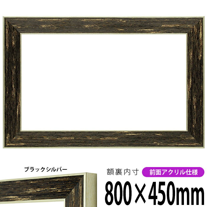 横長額縁 ブレスト 800×450mm ブラックシルバー 前面UVカットアクリル仕様 タテヨコ兼用 長方形 ワイド