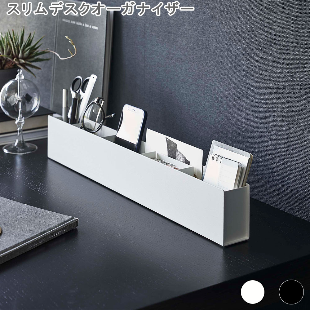 スリムデスクオーガナイザー タワー デスク収納 ペン立て ペンスタンド 鉛筆立て 文房具入れ 文房具収納 小物入れ リモコンラック リモコン収納 収納ボックス おしゃれ シンプル モダン スタイリッシュ コンパクト スリム ワイド 横長 書斎 オフィス リビング ダイニング