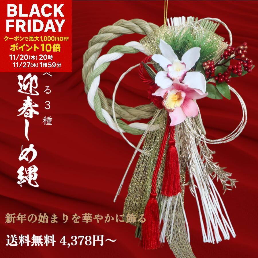 ブラックフライデー最大1000円OFF&P10倍11/20〜★11/30まで早割ポイント10倍!★送料無料 しめ縄 迎春飾り お正月飾り 胡蝶蘭の迎春 豪華モダン 玄関アクセント 可愛い縁起物 ギフト 金リボン 白×紅の華やかデザイン【送料無料 選べる3種の迎春しめ縄】
