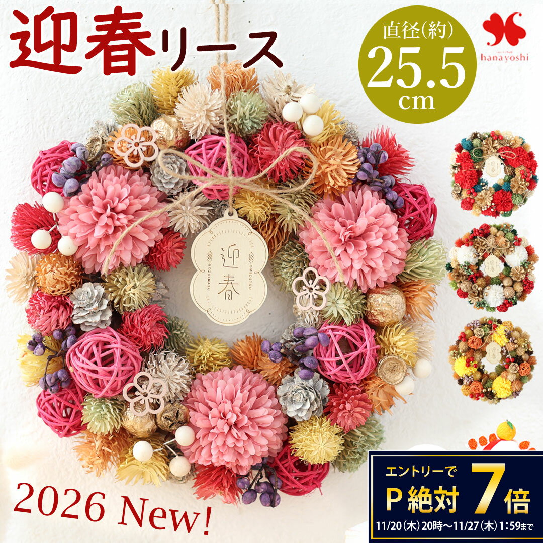 正月飾り リース 2026 新作 ジャパネスクリース お正月リース 和風 花飾り お正月 花 玄関 おしゃれ 正月 迎春 ギフト プレゼント 冬ギフト お歳暮 花 ドライフラワー モダン 和テイスト 花飾り 自宅用 コンパクト 室内 インテリア 送料無料 土日も発送 [12/15~31届]