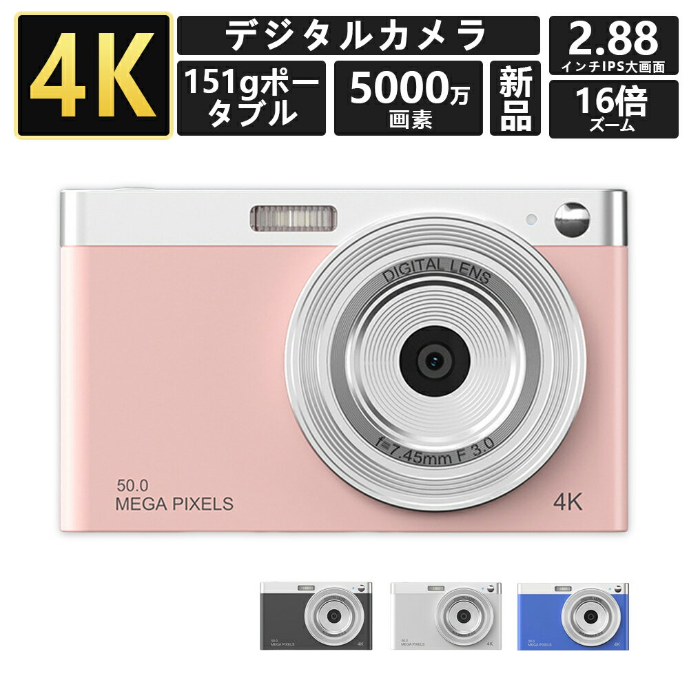 デジタルカメラ 4K 5000万画素 キッズカメラ 安い 軽量 2.88インチ 初心者 子供 向け 16倍ズーム ポケット デジカメ クリスマス プレゼント 2024 新品