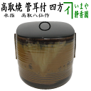 【中古】【茶器/茶道具 水指(水差し)】 高取焼き 管耳付 四方 高取八仙作 (塗蓋)