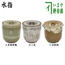 サイズ織部焼:約直径13.3×高15.8cm 志野焼:約直径13.1×高15.4cm 安南:約幅14.8×高16.5cm 作者加藤五陶作 箱紙箱 備考在庫ありの場合(注文日〜3日以内の発送可能) (野輪丸大)(・2940)水指(水器)-釜に補給する水や茶碗・茶筌などをすすぐための水を貯えておく器物 炉・風炉の火の陽の対して水指の水を陰とします。 台子皆具の水指は本来唐物に始まり点前作法の変遷とともに皆具からはなれ銅の水指についで南蛮や国焼の備前・信楽・楽焼や京焼などの焼き物が用いられ、さらに木地釣瓶や曲などの新しい素材や形が造られた。