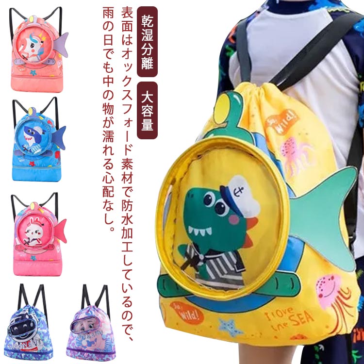 送料無料 プールバッグ 女の子 小学生 ナップサック リュック 2層式 男の子 子供 防水バッグ ビーチバッグ 水泳バッグ 大容量 撥水 温泉バッグ スイムバッグ 軽量 乾湿分離 バッグ シューズ収納 アニマル柄 かわいい