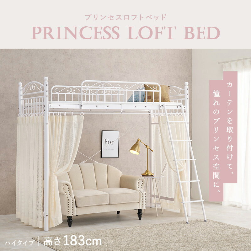 【返品種別B】□「返品種別」について詳しくはこちら□◆「沖縄、離島、一部山間地」への配送は承っておりません。※沖縄県・離島・一部山間地が配送エリア外となります。※ご注文後にお届け先がお届けできない地域の場合はご連絡の上、ご注文をお取消しとさせて頂きます。◆こちらの商品はメーカー及び取引先より直接商品を発送させて頂きます。※他の商品と一緒にお送りすることができませんので、こちらの商品のみお買い求めください。※別の商品を同時にご注文された場合はご連絡の上、ご注文をお取消しとさせて頂きます。※配送先として、営業所留めの指定はできません。※配達時間のご指定は承ることができません。※納品書は同梱されておりませんのでご了承願います。■外箱について配送中に外箱に汚れや傷が生じる場合がございます。誠に申し訳ございませんが、外箱のみの汚れや傷による商品の交換や返品は受け付けておりません。(商品に破損・欠品があった場合は、その限りではございません。)◆まるでプリンセスが住むお城のようなエレガントなデザインのパイプロフトベッドです。◆市販のカーテンを取り付けて使え、好きなものに囲まれた憧れの空間を作れるハイタイプ。◆カーテンポール付■ 仕 様 ■サイズ(約):幅97×奥行210×高さ183/76.5×床面高151/44cm [床面サイズ]W93×L198主材:スチールパイプ組立:お客様組立梱包重量(約):13/21/23kg 3個口[KH3592WH]萩原生活家電>生活雑貨>ベッド・布団・寝具>ベッド