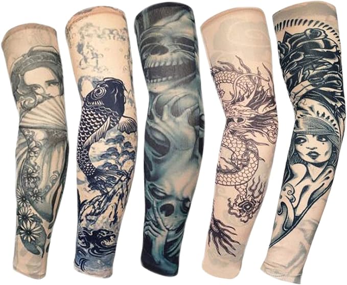 刺青柄タトゥーアームカバー 冷感 腕カバー 日焼け止め タトゥースリーブ 通気 吸汗速乾 男女兼用フリーサイズ 薄手 クール UVカット 紫外線防止 おしゃれ 簡単着脱 両腕分 タトゥー スリーブ 和柄(2組/4枚)注意: 各アームカフの長さは異なります