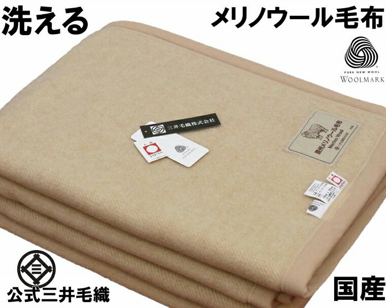 洗える 毛布 Merino Wool メリノ ウール 毛布 シングル 140x200cm ウールマーク付き 公式 三井毛織 日本製 ベージュ色 E2906E