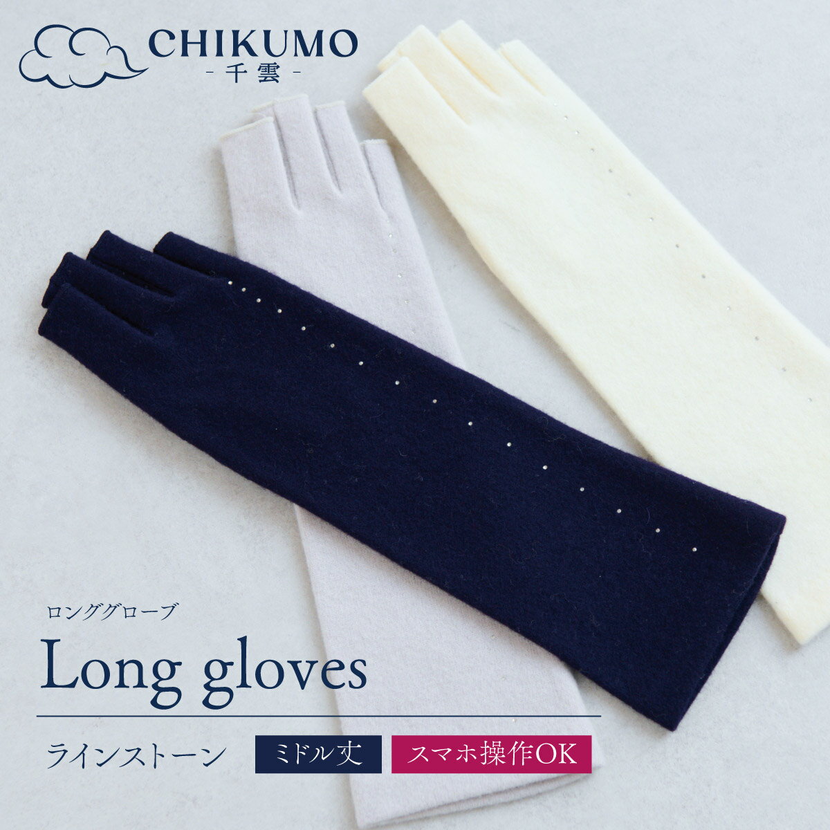 ★セール50%OFF★【CHIKUMO-千雲-】付けたままスマホ操作OK!洗えるロンググローブ ラインストーン ミドル丈 くるり |スマホ対応 手袋 手ぶくろ ハンドウォーマー 女性用 レディース 婦人用 着物 和装 洋服 防寒 ギフト プレゼント