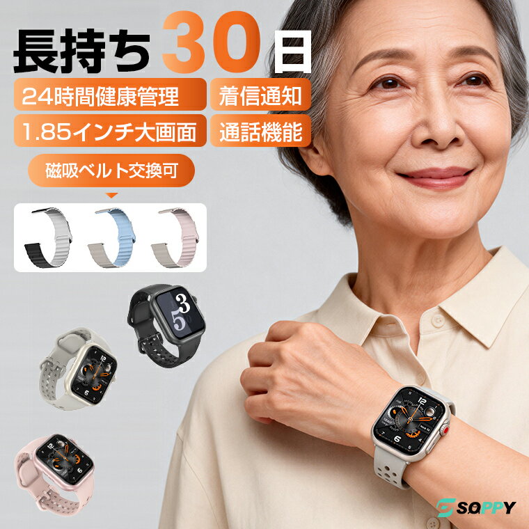 \今だけ★3,280円⇒2,980円!/【24時間健康管理&高齢者向け】スマートウォッチ 通話機能 1.85インチ 血中酸素度 睡眠モニター 音楽再生 心拍計 活動量計 着信通知 歩数記録 心拍計 活動量計 多機能 腕時計 iPhone Android対応 日本語対応 男女兼用 ギフト
