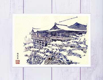清水寺 [ 雪景色 ]( 冬 和風 世界遺産 神社仏閣 モノトーン 水彩画 風景画 )★当店オリジナル★