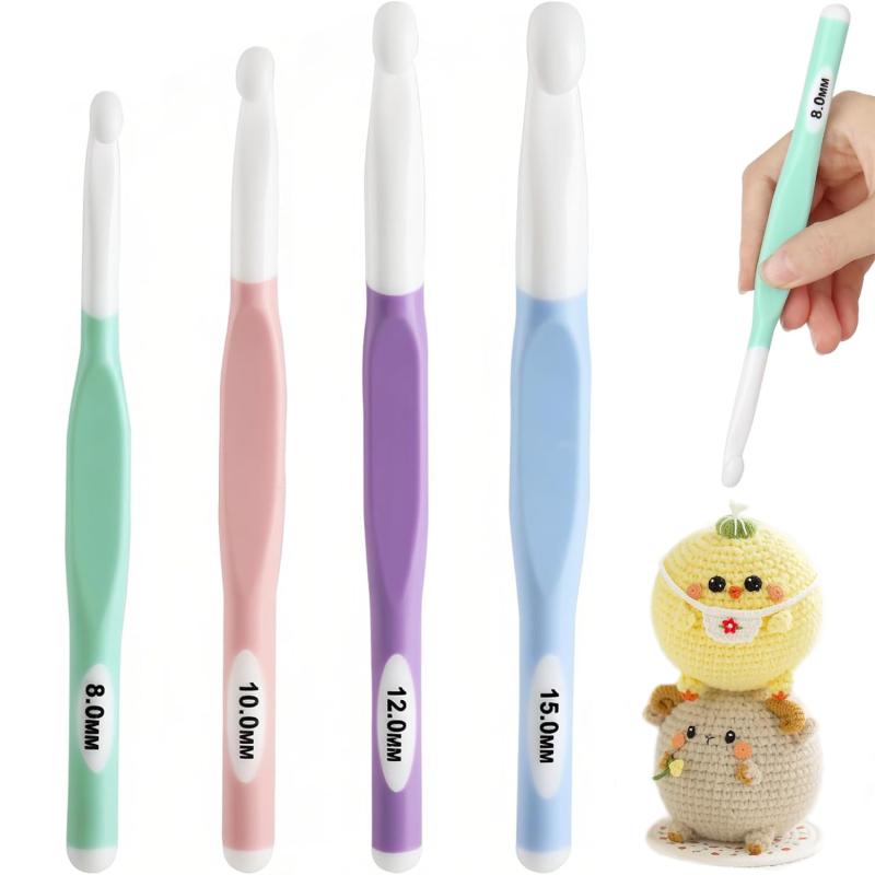 かぎ針 10号 ジャンボかぎ針 4個セット 8mm 10mm 12mm 15mm 人間工学設計 TPRグリップ ABSフックヘッド 滑らか編み 快適グリップ 軽量設計 初心者向け 編み物道具 DIY 手作り クリスマスプレゼント 🎁4サイズセットで幅広いニーズに対応8mm、10mm、12mm、15mmの4サイズのかぎ針をセットでご提供。明るいカラーとハンドルに印字されたサイズ表示で、簡単に区別でき、初心者でも使いやすい設計です。🌟滑らかで使いやすいABSフックかぎ針の先端は滑らかで丸みを帯びたABS素材を使用。糸が引っかかりにくく、編み物がスムーズに進みます。軽量で耐久性があり、長く愛用できる品質です。🖐人間工学に基づいた快適グリップTPR素材のハンドルは、人間工学に基づいて設計され、手にフィットする快適なグリップを実現。長時間の編み物でも手が疲れず、ストレスフリーで楽しめます。🧶多様な作品作りに最適帽子、スカーフ、手袋、毛布、セーター、ペット服など、さまざまな作品作りに対応。初心者から上級者まで、幅広い編み物レベルの方におすすめです。特に太めの糸を使った作品作りに最適です。🎀プレゼントにぴったりのセットかぎ針編み愛好家や手作り好きの方への贈り物に最適。誕生日、母の日、クリスマス、感謝祭、新年など、特別な日のギフトとして喜ばれます。