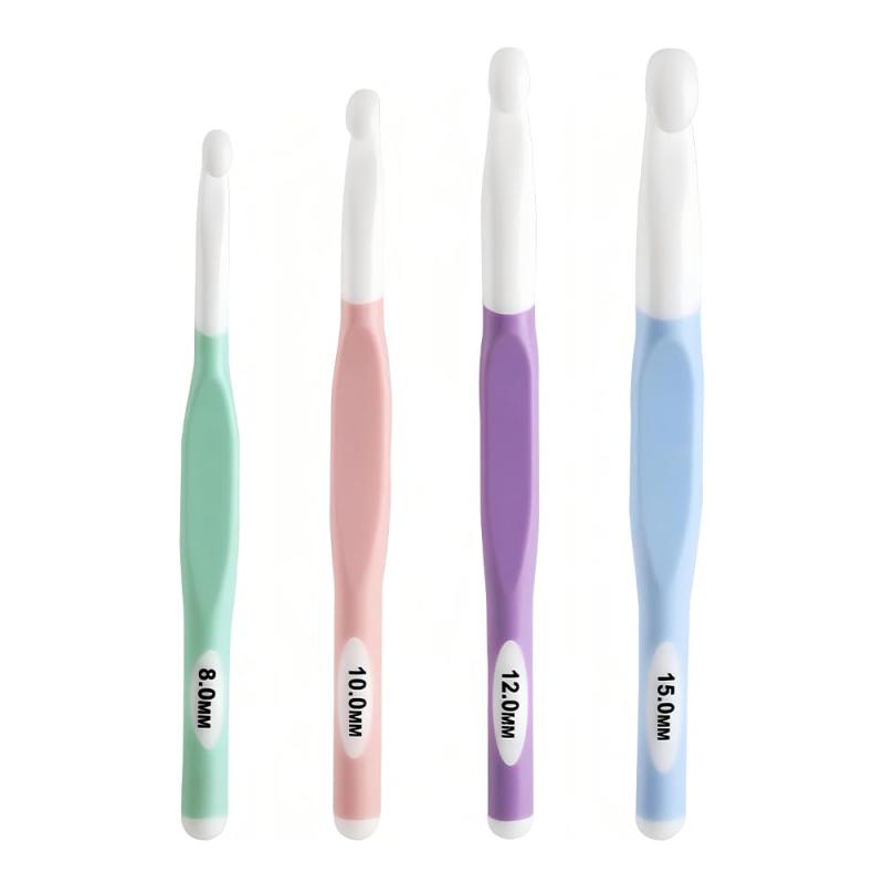 かぎ針 10号 ジャンボかぎ針 4個セット 8mm 10mm 12mm 15mm 人間工学設計 TPRグリップ ABSフックヘッド 滑らか編み 快適グリップ 軽量設計 初心者向け 編み物道具 DIY 手作り クリスマスプレゼント