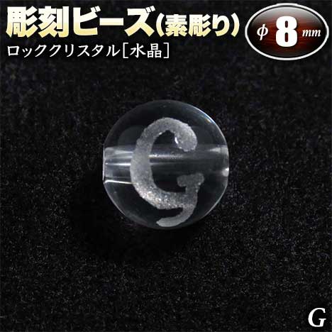【バラ売り】ロッククリスタル[水晶]・彫刻ビーズ◆8mm玉◆・アルファベット【G】~素彫り~〈1玉〉・パワーストーン・天然石・お守り・ハンドメイド・手作り・パーツ・☆無色透明な神秘的魅力に満ちた石☆