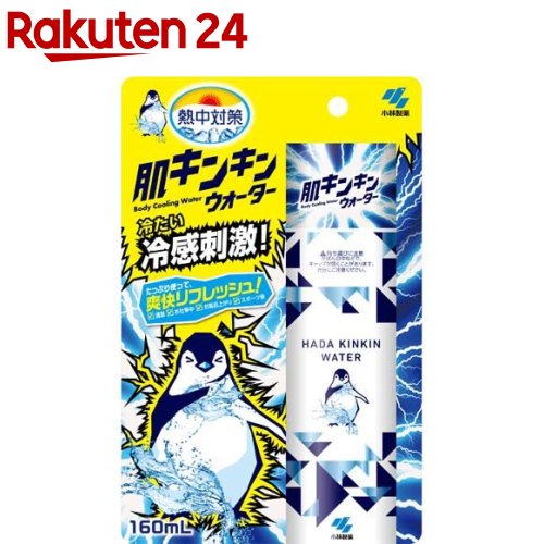 お店TOP>日用品>季節用品>快適グッズ 夏用>ひんやりグッズ 夏用>熱中対策 肌キンキンウォーター (160ml)【熱中対策 肌キンキンウォーターの商品詳細】●ひんやり気持ちいい冷感を与えます。※●通勤・通学中、お仕事中、お風呂上がり、スポーツ後などに使用すると涼しく快適に過ごせます。●汗をかくたびに使ってリフレッシュ!※冷感は個人によって感じ方が異なります。【使用方法】・手に適量をとり、汗をかきやすいところを中心に肌に塗り広げてなじませる。冷感の強さが不十分に感じたときは再度使用する。*顔には使用しない。【成分】エタノール、水、メントール、乳酸メンチル【注意事項】・メントールの冷感刺激に弱い方、アルコール過敏症の方、特に肌の弱い方、幼児は使わない。・皮ふに異常(傷、はれもの、湿疹、やけど、日焼けによる熱傷など)があるところ、顔、粘膜、除毛直後には使わない。・肌に合わない場合は使用を中止する。・肌の弱い方はあらかじめ少量で試し、肌に異常がないことを確認し使用する。・日焼け止めなどの油分が多い成分を塗っていると、効果が感じにくくなるおそれがある。・火気の近くで使用しない。・火気を使用している室内で大量に使用しない。・車内、その他密閉空間では使用しない。・用途以外には使用しない。・小児、認知症の方などの手の届くところに置かない。・小児、認知症の方などの誤飲に注意する。・変色する場合があるため、床、テーブル、樹脂製品についた場合はすぐに拭き取る。・車内や高温の場所、直射日光の当たる場所を避け、涼しい場所に保管する。・衣類に付着した際は、色落ちや色移りのおそれがあるため、すぐに流水で洗う。★応急処置・かゆみや湿疹、発赤など肌の異常を感じたときは、すぐに使用を中止し、水で充分に洗い流す。・目に入った場合は、すぐに流水で洗い流す。・飲んだ場合は、吐かせずにコップ1〜2杯の水を飲ませる。・異常がある場合は本品を持参し、医師に相談する。【原産国】日本【ブランド】熱中対策【発売元、製造元、輸入元又は販売元】小林製薬商品に関するお電話でのお問合せは、下記までお願いいたします。受付時間9:00-17:00(土・日・祝日を除く)健康食品・サプリメント:0120-5884-02歯とお口のケア:0120-5884-05衛生雑貨用品・スキンケア・ヘアケア:0120-5884-06芳香・消臭剤・水洗トイレのお掃除用品:0120-5884-07台所のお掃除用品・日用雑貨・脱臭剤:0120-5884-08リニューアルに伴い、パッケージ・内容等予告なく変更する場合がございます。予めご了承ください。小林製薬541-0045 大阪府大阪市中央区道修町4-4-10※お問合せ番号は商品詳細参照広告文責:楽天グループ株式会社電話:050-5577-5043[アウトドア/ブランド:熱中対策/]