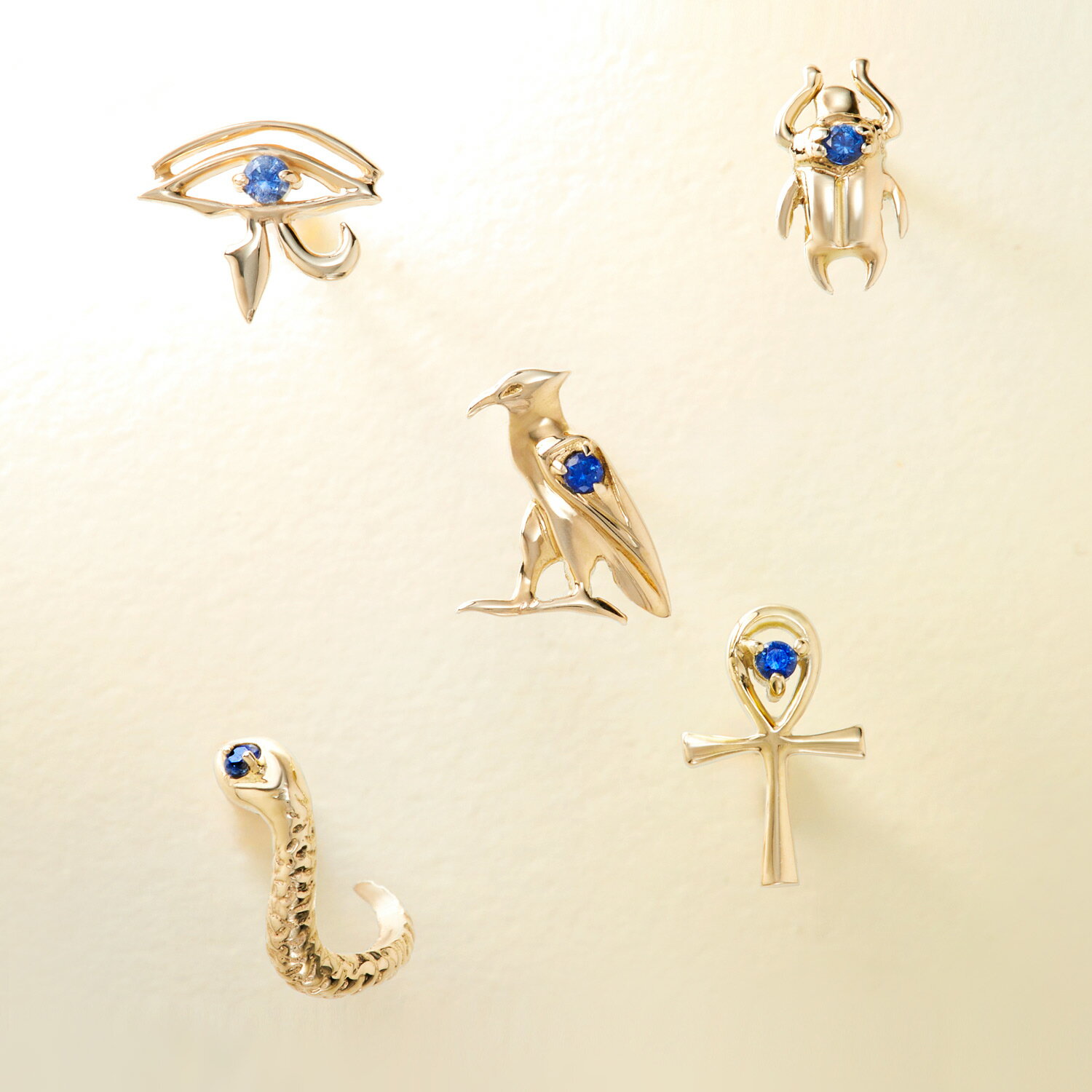 【3日以内出荷】古代エジプト象形文字 ダイヤモンド サファイア K10ゴールド スタッドピアス・ヒエログリフ【片耳】 10K 10金 ウジャト アンク ケペル ア ジュ日本製