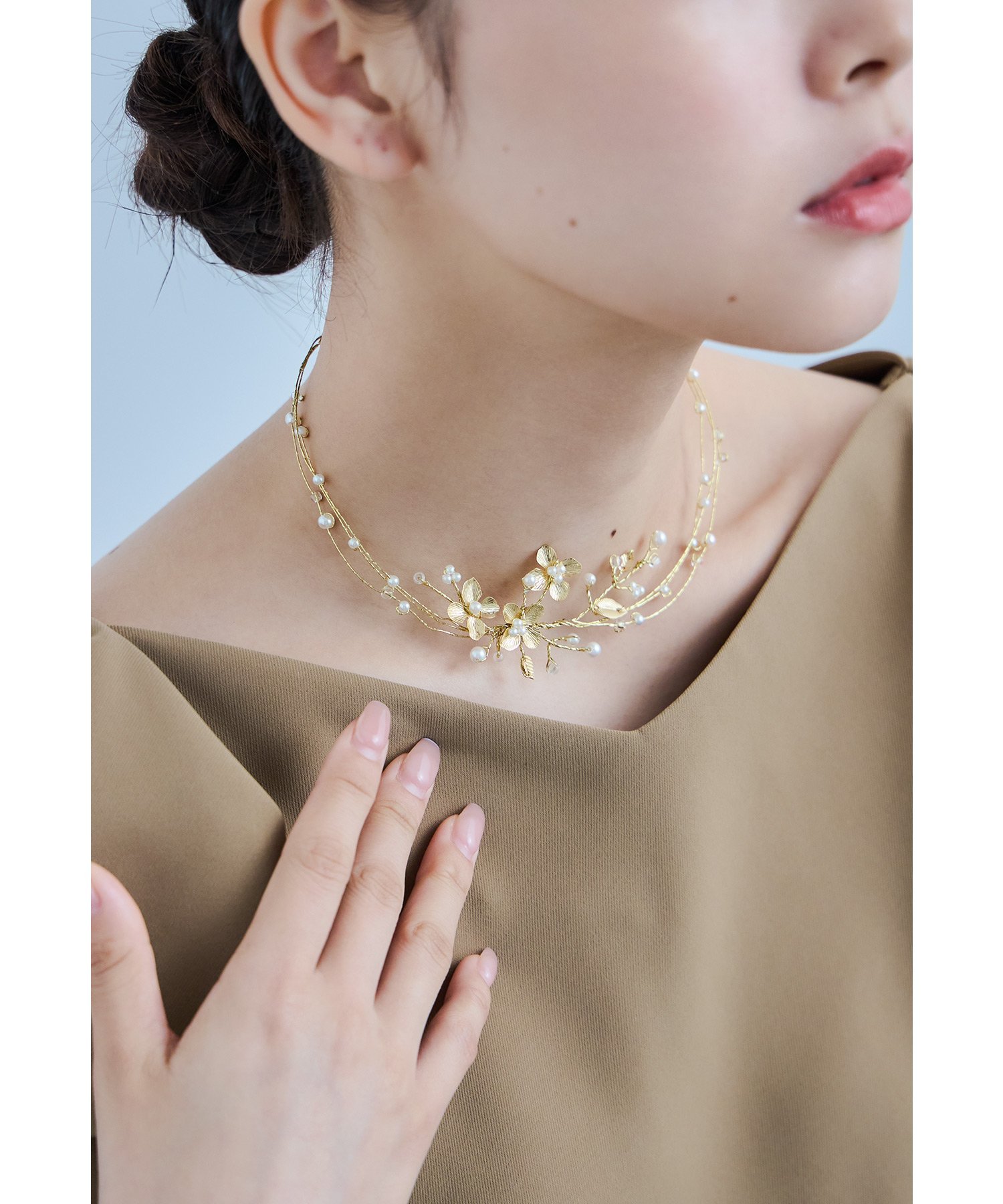 niana フラワーワイヤーネックレス シルバー ゴールド 結婚式 二次会 成人式 同窓会 ビーフラット アクセサリー・腕時計 ネックレス シルバー ゴールド