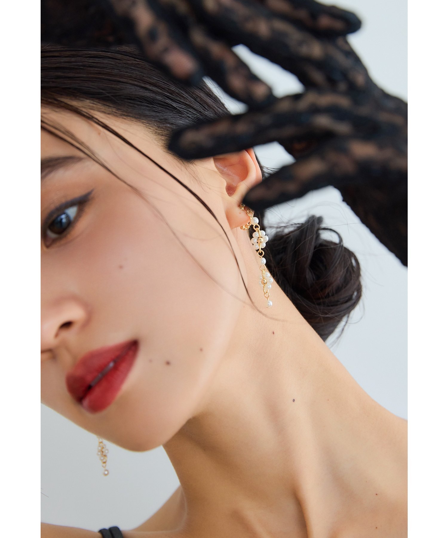 niana フラワーパールリーフモチーフイヤリング ビーフラット アクセサリー・腕時計 イヤリング・イヤーカフ シルバー ゴールド