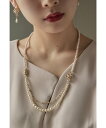 niana ランダムパールミックス2連ロングネックレス ビーフラット アクセサリー・腕時計 ネックレス ホワイト【送料無料】