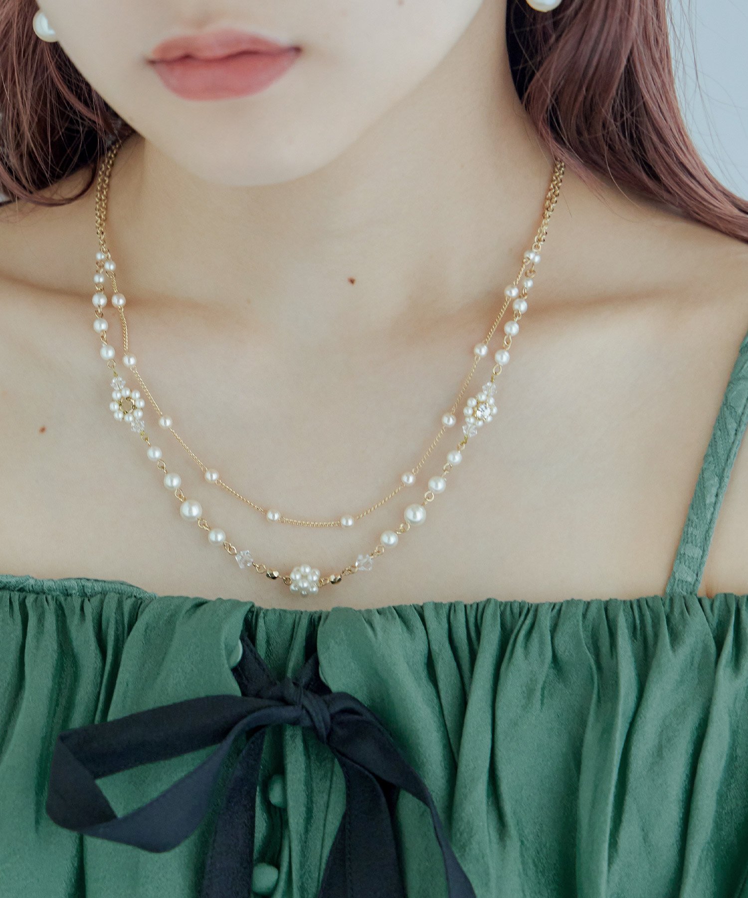 niana フラワーパールビーズ2連ネックレス ビーフラット アクセサリー・腕時計 ネックレス ホワイト【送料無料】