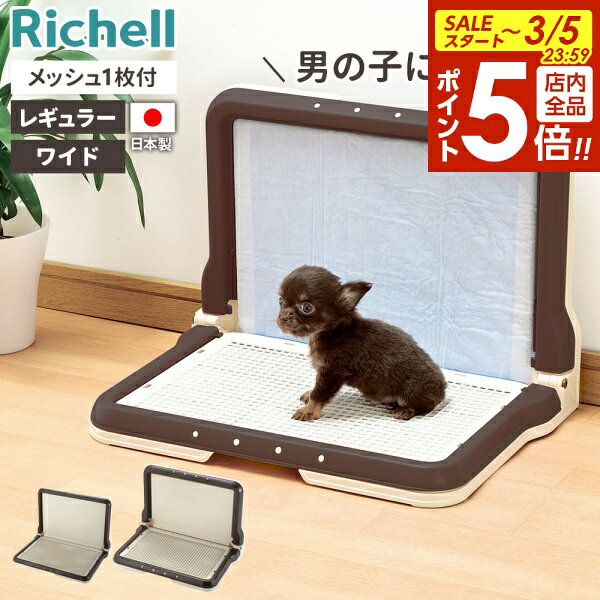 【3/5 全品ポイント5倍】リッチェル 犬用トイレ しつけ用ステップ L型トレー ダークブラウン レギュラー/ワイド | トイレトレー 犬 水洗い 洗える オス 男 壁付き トレーニング おしっこ メッシュ付き しつけ 折りたたみ L字型 壁汚れ防止 男の子 足上げ