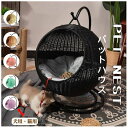 |  楽天1位 猫 ベッド ラタン ペットベッド ドーム型 丸 猫 ペットマット ハンギングチェア コンパクト 洗える クッション付 キャットハウス ハンギングベッド ハンモック ハンギング ゆりかご ブラウン ナチュラル ネコ家具