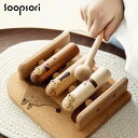 !ご注意!必ずご確認ください 木材は噛み続けると破損の原因となり危険です。スプソリの木のおもちゃは舐めても安心な無塗装ですが、何でも口に入れてしまう時期の赤ちゃんに長時間与えることはおやめください。 歯固めなど0歳向けの噛むことを前提としたおもちゃ以外は大人の目の元でお使いください。 内容/サイズ シロフォン:14cm×12cm×4.7cm 固定された紐の長さ約20cm、固定された棒部分の長さ12cm 素材木材、ゴム(内蔵)、ひも対象年齢1歳〜 重さ約0.3kg(パッケージ含む)製造ベトナム ・木材は世界各国から輸入 ・舐めても安心EN71クリア亜麻仁油仕上げ ご注意 ・3本それぞれの音は異なります。木材の特性上、音階はおもちゃごとに異なる場合がございます。 ・木材の色や種類は予告なく変更される場合がございます。 ・天然木のため木材の色味や木目は一つひとつ異なります。木のおもちゃSOOPSORI(スプソリ) SOOPSORI(スプソリ)は2006年に我が子に安心できるおもちゃを与えたいとの思いから生まれ設立された、韓国の木のおもちゃと子ども家具のブランド。 世界各地の色と木目が美しい天然木を使用、着色料や化学製品による塗装をせずの植物油(亜麻仁油)で仕上げし、木材の個性を生かし五感で楽しめる製品づくりにこだわっています。 現在、韓国を代表する木製玩具家具ブランドに成長し、アジア、アメリカ、EU、オーストラリアなど世界各地で販売されています。 \新商品/3匹のこぶたの絵本をモチーフにしたシロフォンが新登場♪ 1歳2歳におすすめ叩く楽器おもちゃ 3匹のこぶたのシロフォン 背面に隠れたおおかみに気がつくかな? 絵本を読みながら音を出して楽しんでみよう 絵本の世界そのままに可愛いこぶたが並んだ簡単シロフォン 感性や情緒を育むおもちゃで木の音色が心地よく響きます。 着色なしの天然木材を亜麻仁油のみですべすべに仕上げた手触りは赤ちゃんのおもちゃにぴったり。 指先運動能力やリズム感の発達にも役立ち、親子で楽しめるおもちゃす。 -内容- ・対象年齢の目安:1歳〜 ・内容:シロフォン(木琴)1個 ・サイズ:15cm×14cm×5cm ・製造方法:舐めても安心EN71クリア亜麻仁油仕上げ ・使用木材:Beech、Sapele、Maple、Walnut ※使用木材は予告なく変更される場合がございます。 ※天然木のため木材の色味や木目は一つひとつ異なります。 タンタンタン♪ 音が鳴る!楽しい!うれしい! -DETAIL- 着色なしの天然木材とゴムと紐だけで構成されています。 箇所ごとに色や木目の異なる木材を使用、模様などはすべて焼印で表現しています。 天然木の手触り、ぬくもりを感じることができます。 リボンのみ110円購入はこちら 包装紙+シール385円購入はこちら 包装紙+のし385円購入はこちら