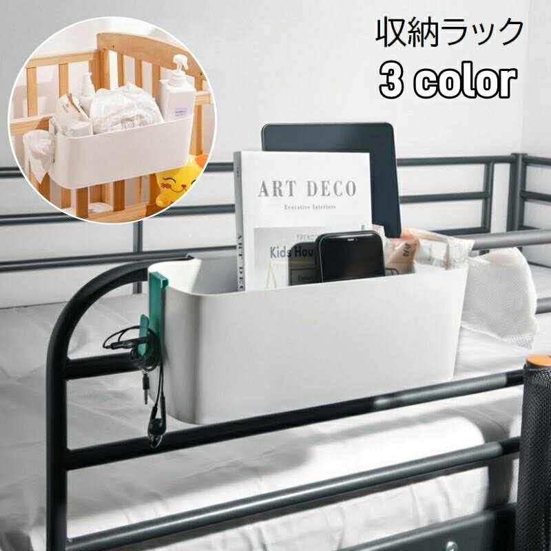 送料無料 収納ラック ベッドサイドポケット 小物入れ 日用品 生活雑貨 吊り下げ 引っ掛け フック 穴あけ不要 整理 整頓 無地 ホワイト 白 シンプル 収納ケース 収納ボックス