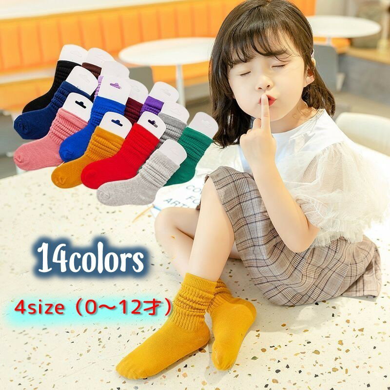 送料無料 クルーソックス キッズ ベビー子供用 赤ちゃん 靴下 くつした 男の子 女の子 男児 女児 単色 無地 くしゅくしゅ リブソックス シンプル おしゃれ かわいい デイリー 通園 通学 カラバリ豊富