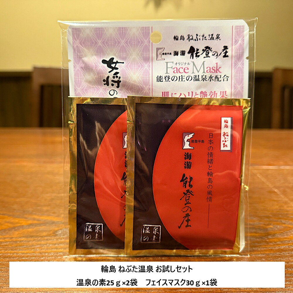 【お試しセット】送料無料 温泉の素 25g×2袋 フェイスマスク 30g×1袋 輪島ねぶた温泉 美容 プチギフト 美容セット 美容シートマスク 保湿 美肌 入浴剤 スキンケア おしゃれ リラックスグッズ ツルツル 誕生日 母へ プレゼント 贈り物 女性 男性 能登 復興支援 能登の庄