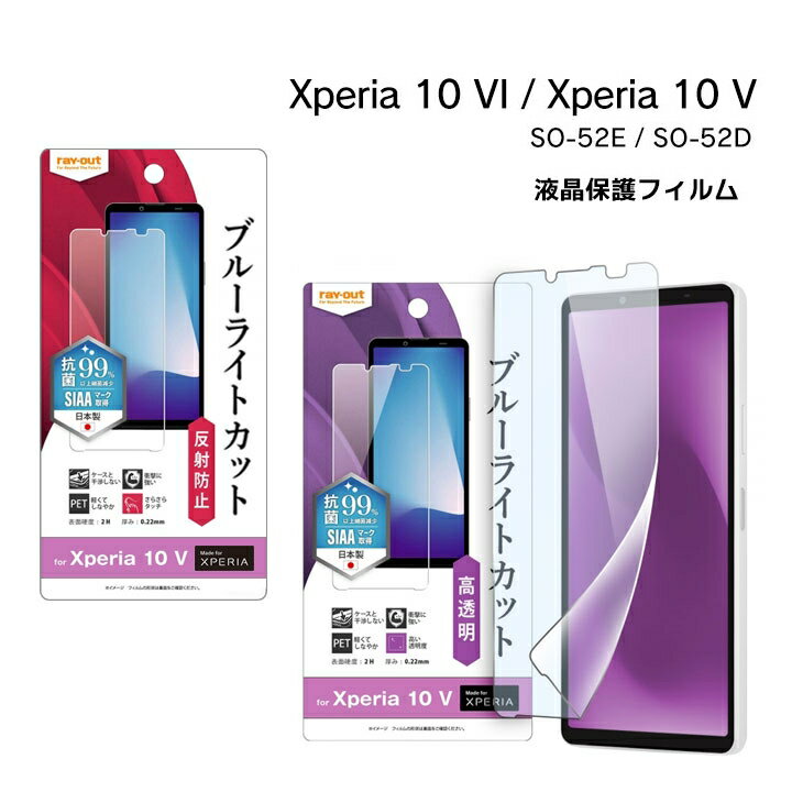 Xperia10VI Xperia10V フィルム SO-52E SO-52D SOG11 フィルム 衝撃吸収 ブルーライトカット 光沢 反射防止 抗菌 抗ウイルス エクスペリア 液晶保護フィルム エクスペリア10vi 画面保護 高透明 SIAAマーク 日本製[RT-RXP10M5F-D]