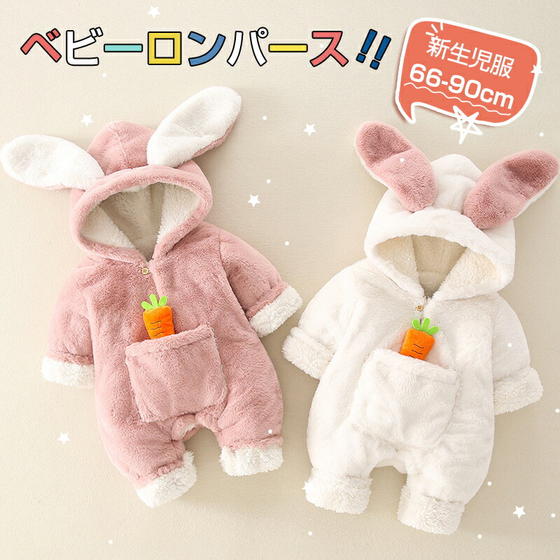 【P5倍】うさぎさん 着ぐるみ ロンパース ベビー ウサギさん 干支 兎 卯 裏ボア フード付き ベビー服 新生児服 あったか カバーオール 男の子 女の子 ボア もこもこ 寝袋 秋冬 パジャマ スリープウェア ベビーウェア ふわふわ クリスマス 長袖 マタニティ 出産祝い 誕生日