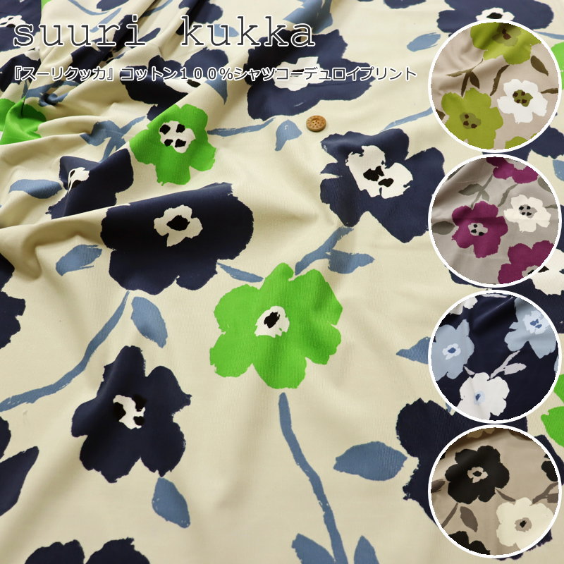 『suuri kukka≪スーリクッカ≫』コットン100%シャツコーデュロイプリント素材:コットン100% 生地幅:約105cm秋冬/北欧/花柄/女の子/キッズ/大人/綿/ウェアー/小物/インテリア/手づくり/ハンドメイド/