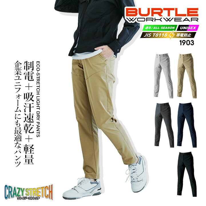 バートル パンツ 1903 制電 JIS T8118適合 帯電防止 吸汗速乾 ドライタッチ ストレッチ 軽量 4WAY 耐久性 エコ ユニセックス 春夏 秋冬 移動着 作業服 作業着 ユニフォーム BURTLE